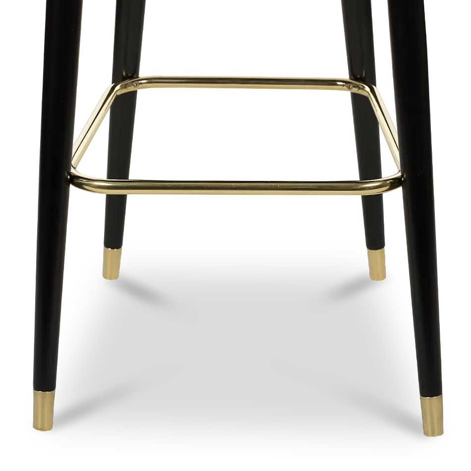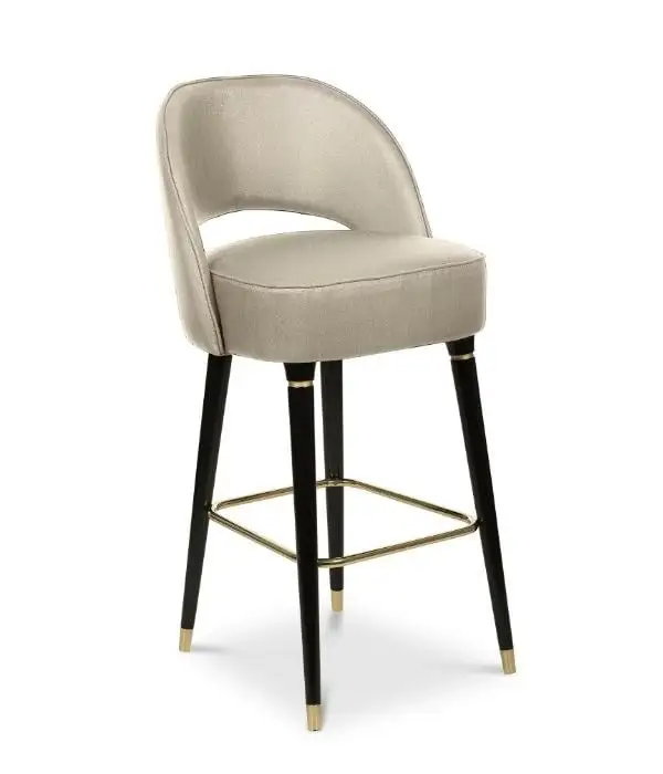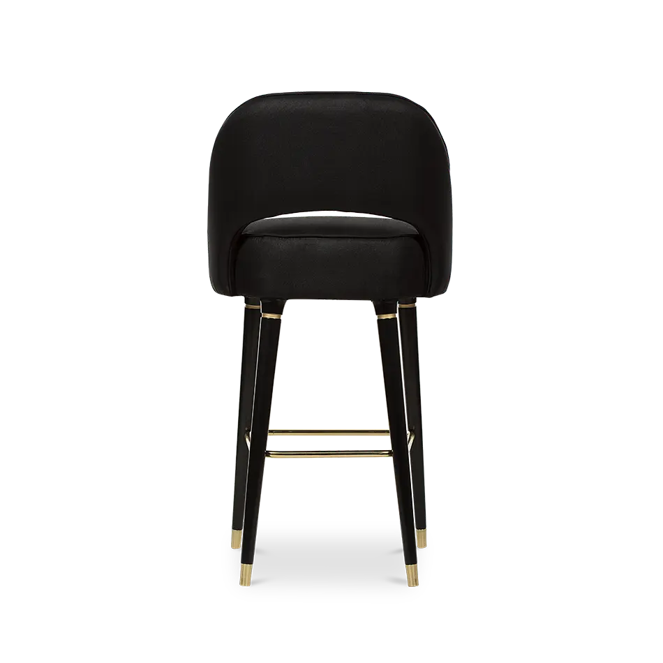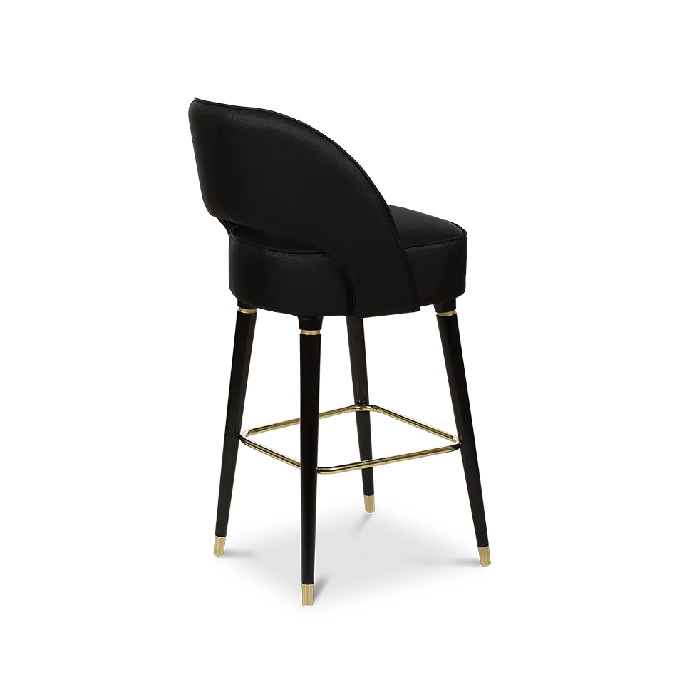 The lusy bar chair exudes mid-century modern charm with its sleek crescent open-back design. Featuring glossy black legs that exude a touch of glamour, the chair is adorned with polished metal accents, particularly on the bottom legs, that add a hint of sophistication. Upholstered in plush suede, this bar chair is the epitome of luxury, making a statement in your home furnishing that is both chic and refined.