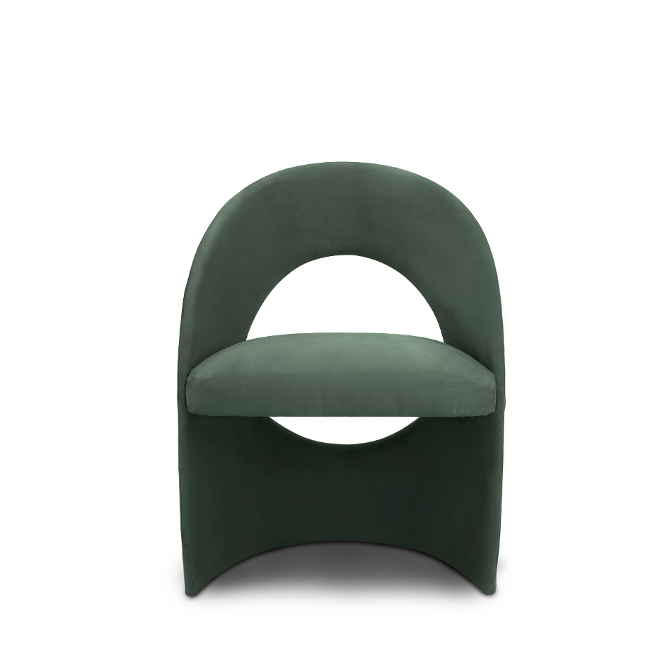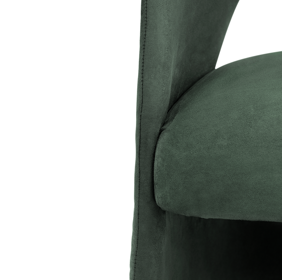 Grace is a dining chair that combines eye-catching aesthetics with exceptional performance. Its polished wood back is a graceful curve that is sure to captivate the eye. Upholstered in suede and featuring a super stylish open back, grace exudes both color and class. Its sleek design reminiscent of mid-century chairs is infused with a contemporary twist, making it a versatile choice for seamlessly blending with various styles or patterns. Grace is not just a chair, but a statement piece that elevates any dining space with its unique and sophisticated design.
