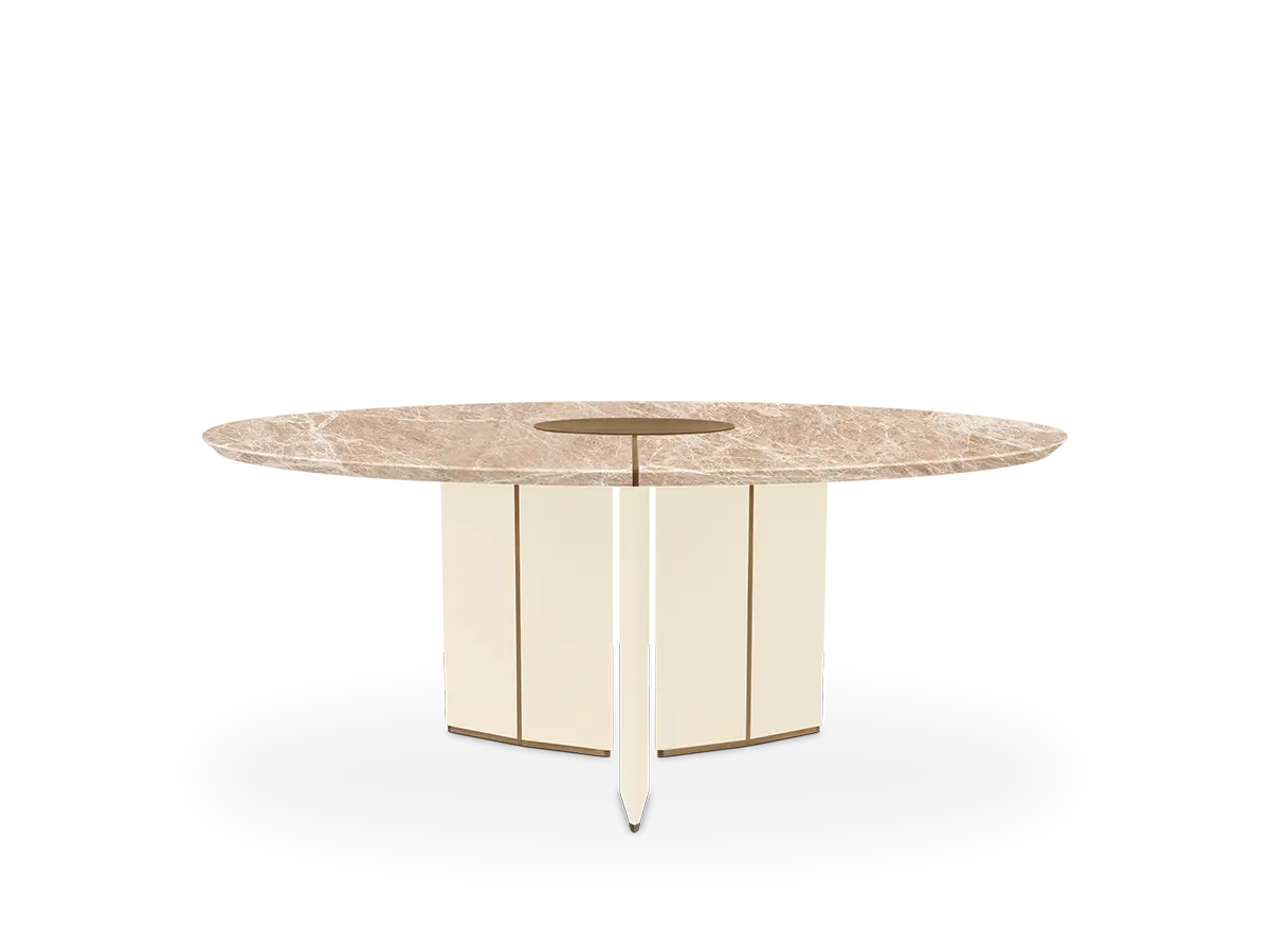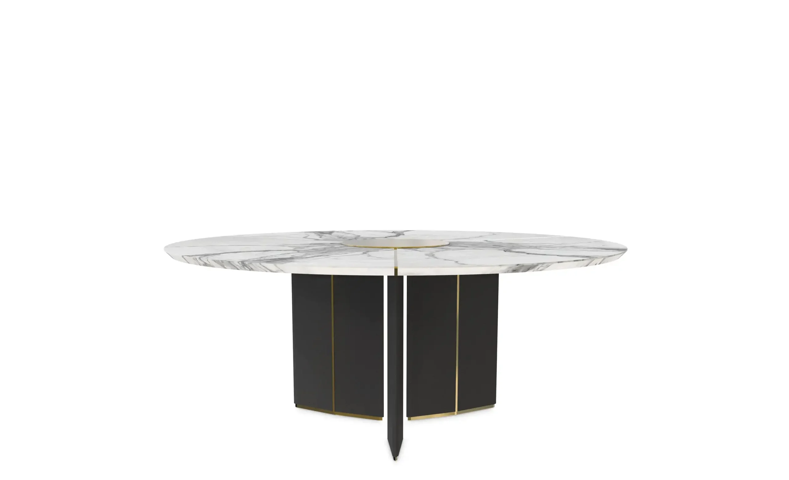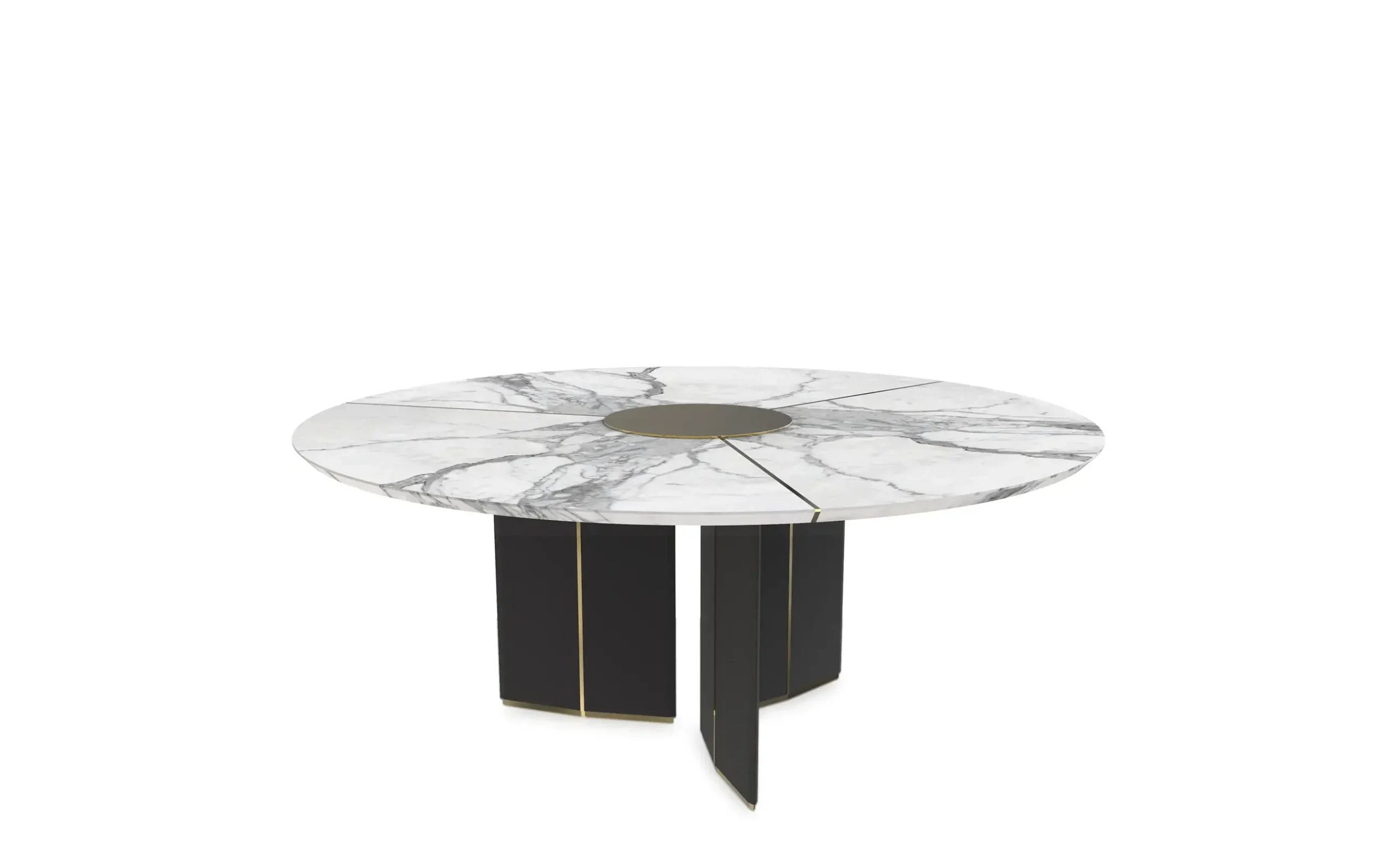 The Lopez round dining table is a lavish masterpiece that draws inspiration from architectural elements, showcasing the unparalleled strength and timeless elegance of marble. Its circular marble top is supported by a sleek base adorned with luxurious black leather and polished metal detailing, adding a touch of refinement to its design. This opulent table redefines the perception of dining tables, exuding a sense of sophistication and class that is truly unmatched. With its exquisite combination of materials and impeccable craftsmanship, the Lopez dining table becomes a captivating centerpiece that elevates the dining experience to new heights.