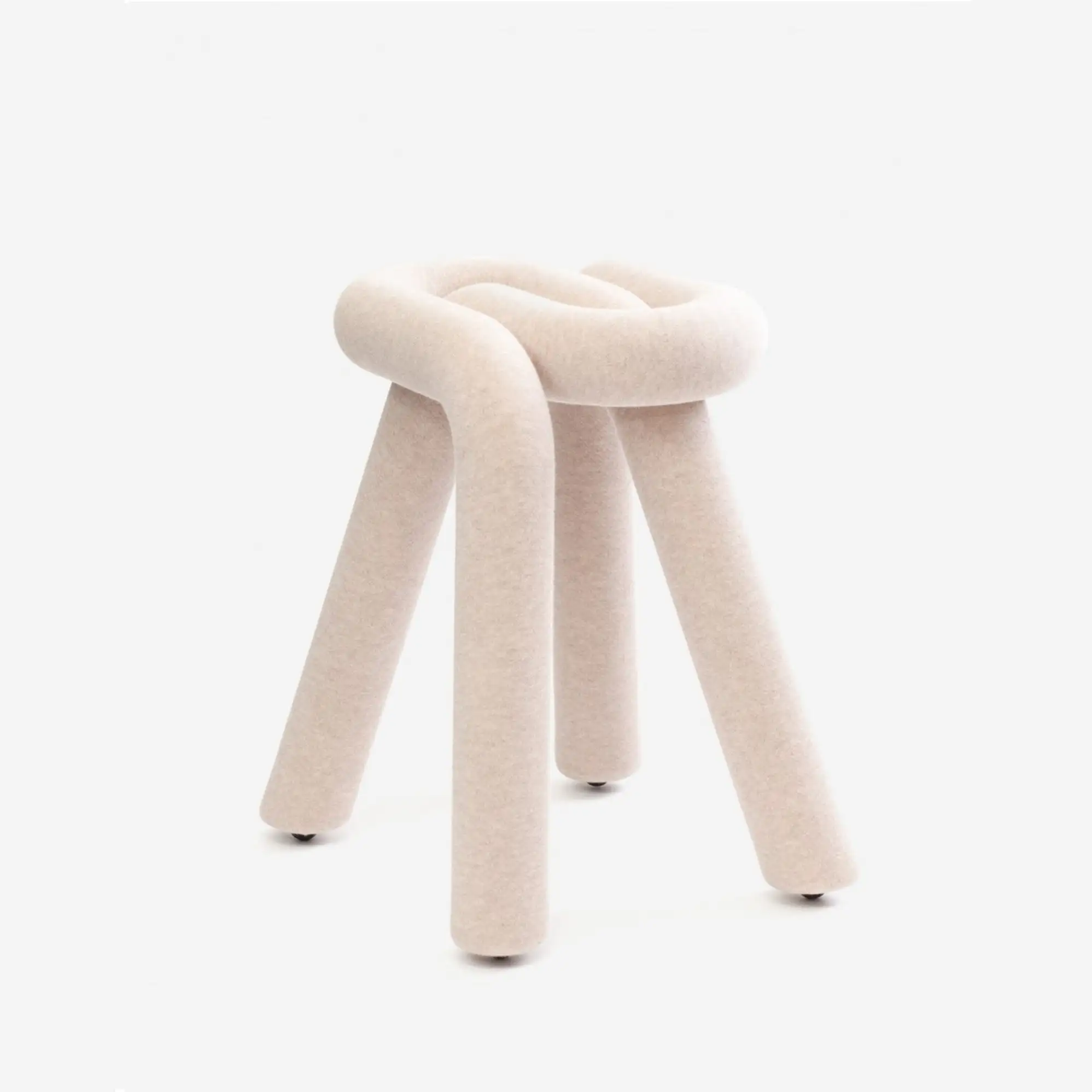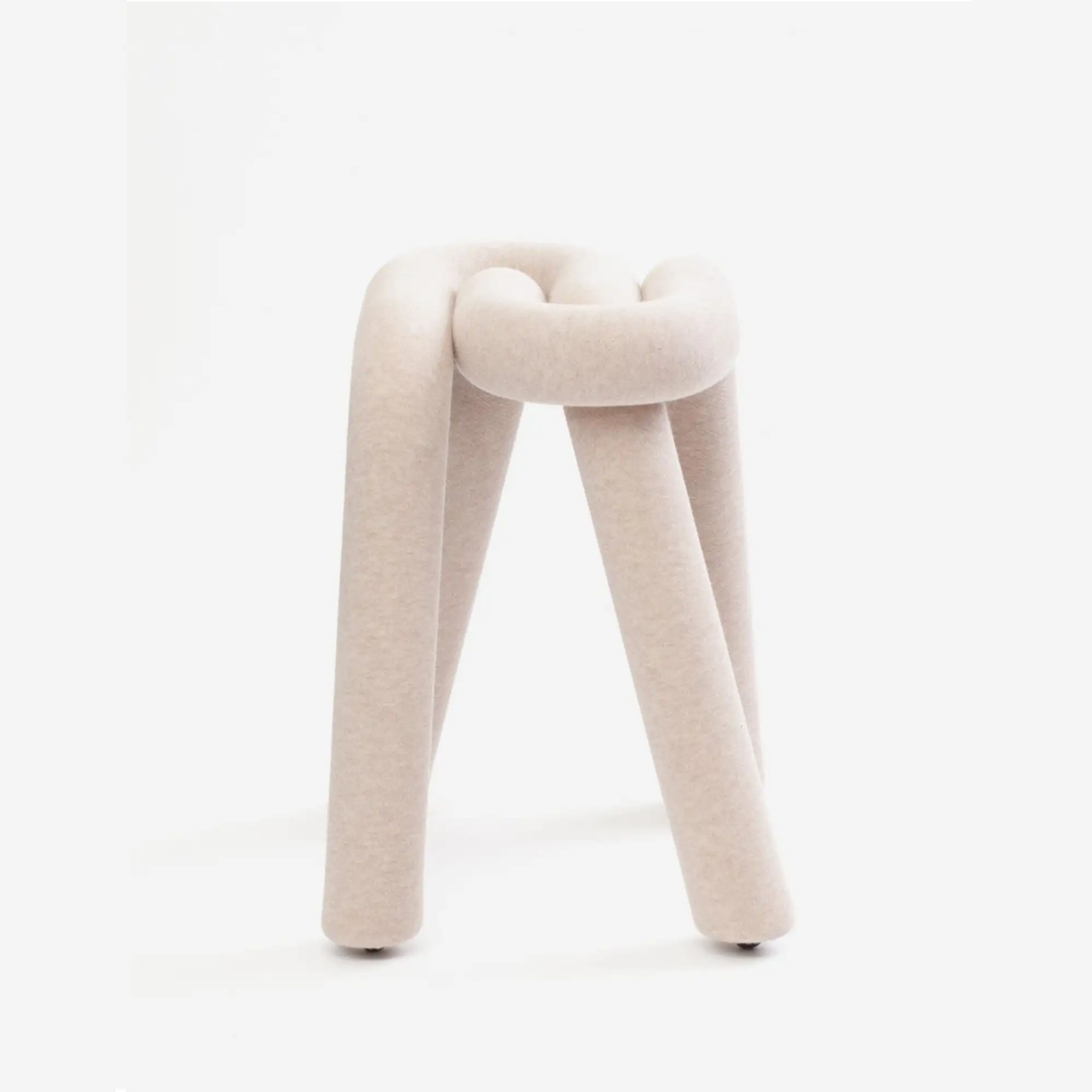 The ropo stool is a striking piece of furniture crafted from two identical tubular metal parts intertwined to create a modern take on the classic bended seat. With its unique design, the ropo stool features thick foam padding that is expertly contoured to provide unparalleled comfort, resembling the boldness of a font. It redefines the traditional concept of a seat, making it a true statement piece for any home.